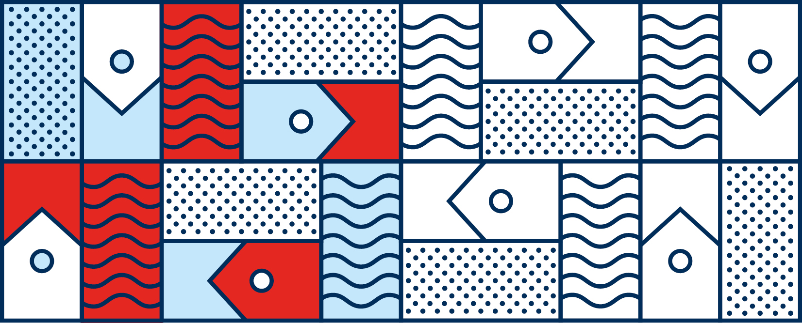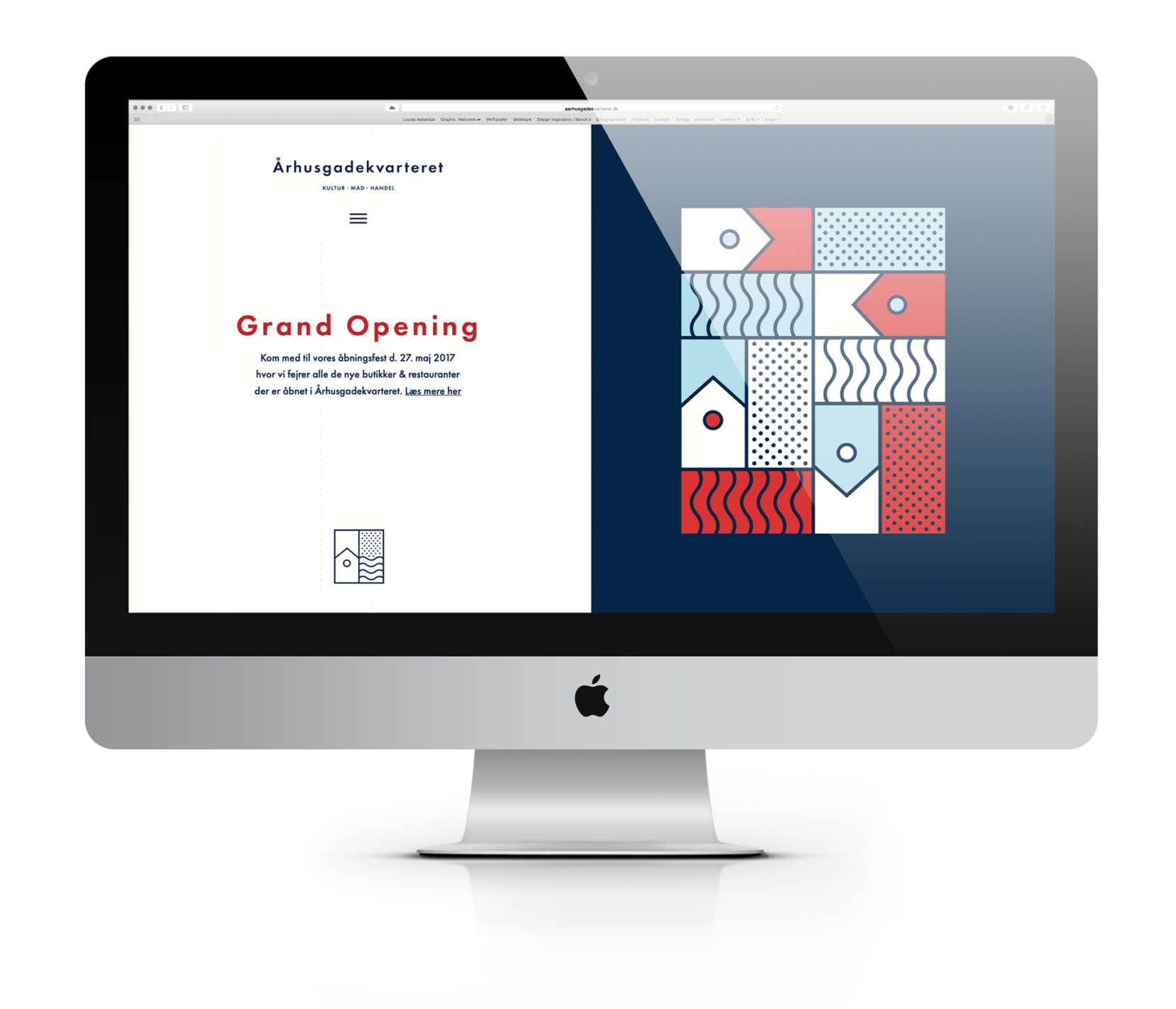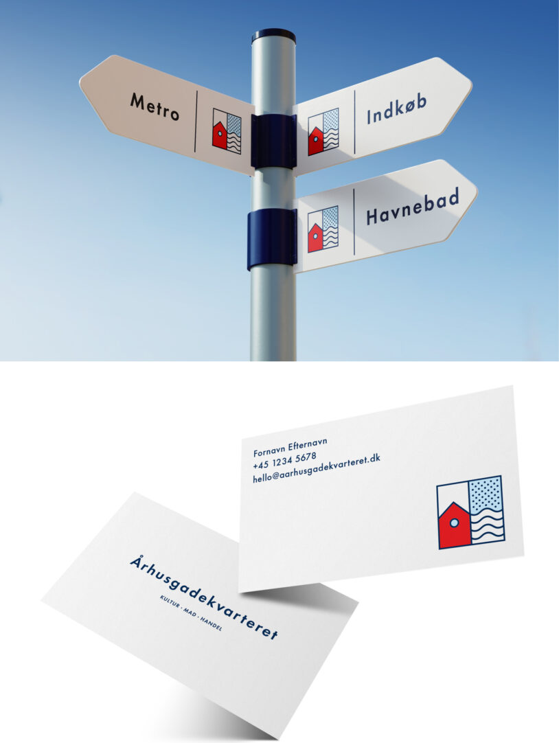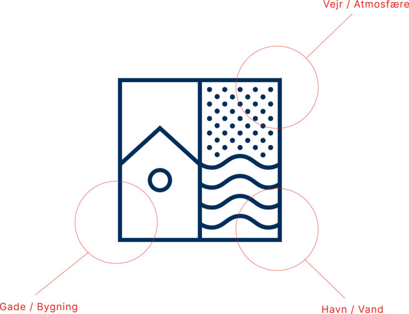 In order to capture the spirit of the area as best as possible, the logomark is designed to represent 3 defining characteristics of the neighborhood – the weather and the atmosphere, the streets and buildings and finally, the harbor and the water. The logomark gives the identity a humorous touch and appears both figurative and minimalistic. The 3 illustrations from the logomark can be put together in quirky and unique patterns with and without colors, which makes the identity extremely scalable – both digitally and in print.