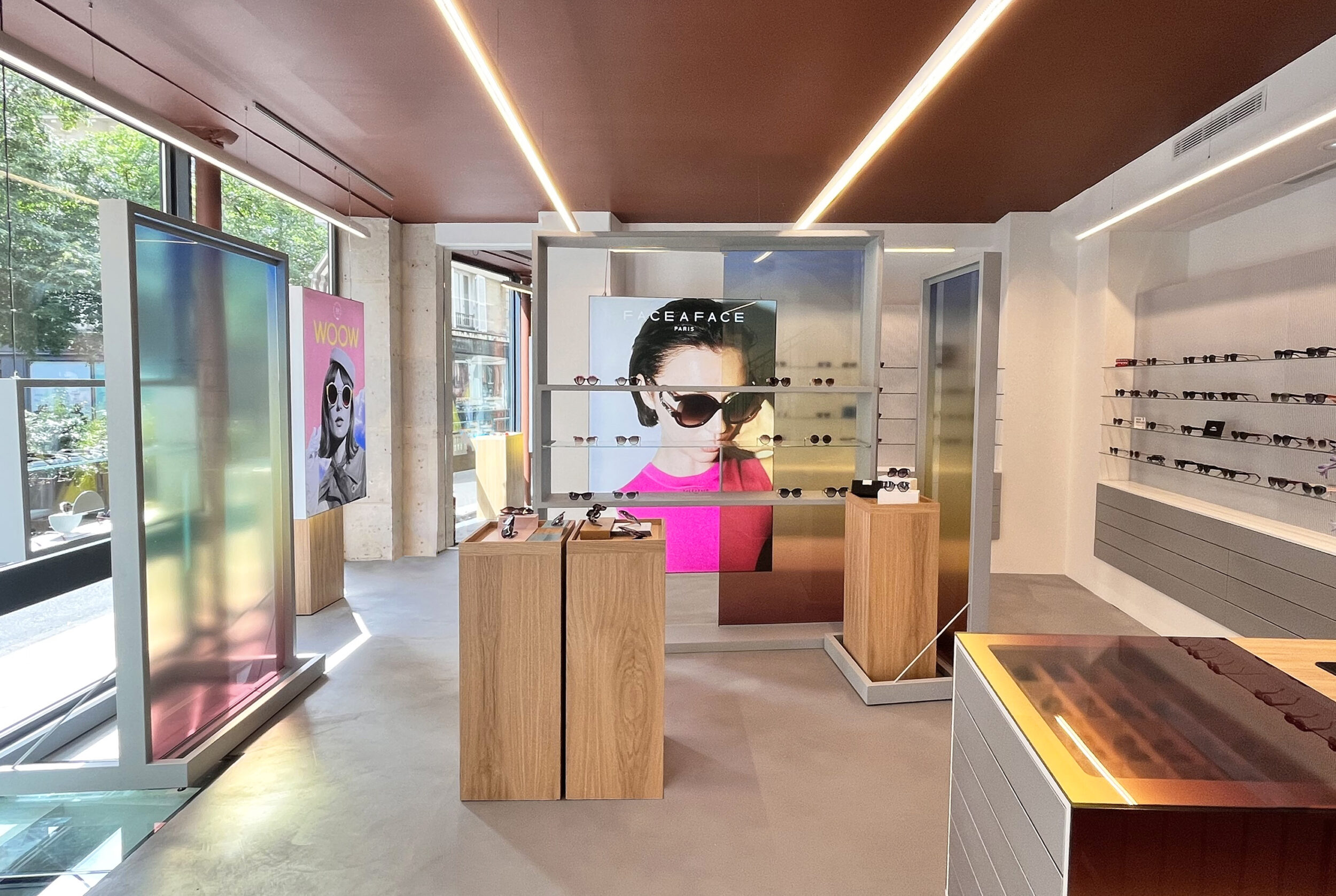 The Design Eyewear group has opened their own retail store, and BRIQ has helped develop the concept for the spatial design. As the brand DEG° hosts a handpicked array of brands, one of the main tasks was to create a retail experience encompassing the key values across the various brands. Inspired by the meeting between the human body, design and technology, the aim was to create a vibrant and playful retail space, alluring both from a distance and in detail.