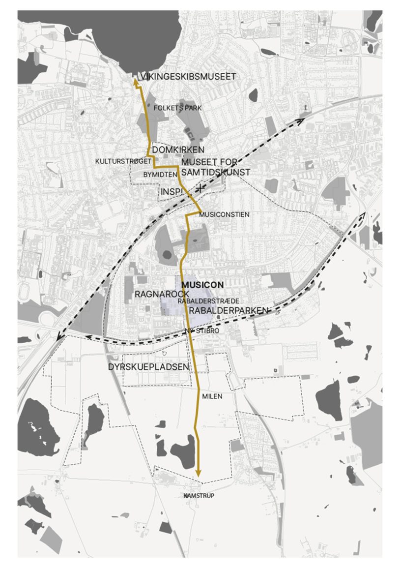 Musicon is a new urban district in Roskilde within 15 minutes’ walking distance from the city center, located next to the renowned Roskilde Festival. Rising out of the old buildings and infrastructure of the former concrete factory, the urban area builds upon its industrial history and building heritage.