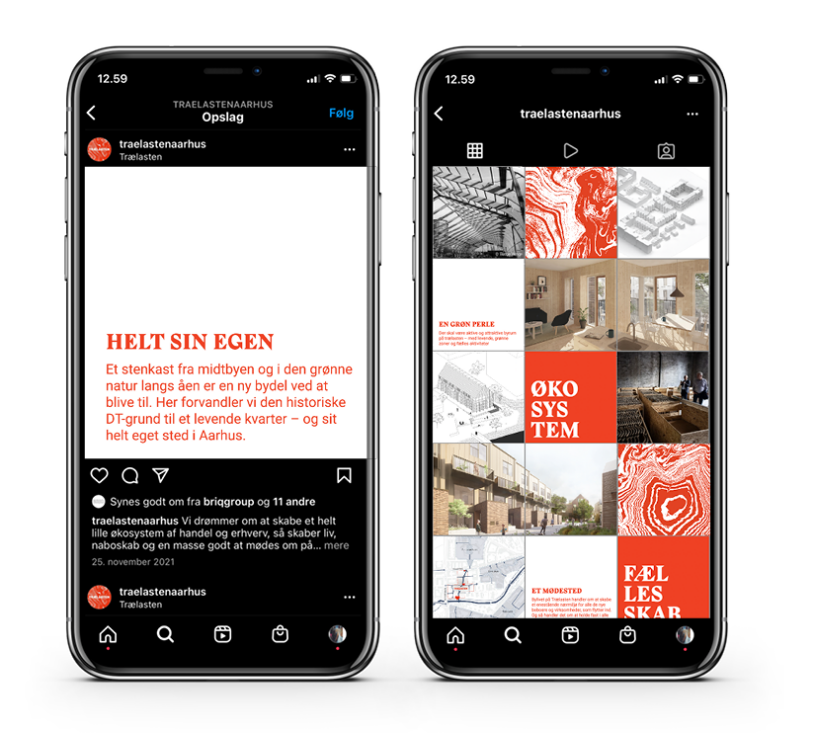 Trælasten is a former industrial plot that used to house the city’s lumberyard, which is now transforming into a new mixed neighborhood with retail, workplaces, housing and culture. BRIQ has developed the area’s urban life and retail strategy as well as the coming community house Åens Hus, and finally BRIQ has developed the area’s visual identity.
